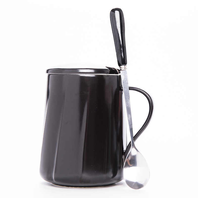 Zuhause » Produkte » Keramikbecher » Keramische Teetasse » benutzerdefinierte Logo Geschenkbox Porzellan Kaffeetasse Set Holzgriffe 400ml Schwarz-Weiß Keramik Tasse Set